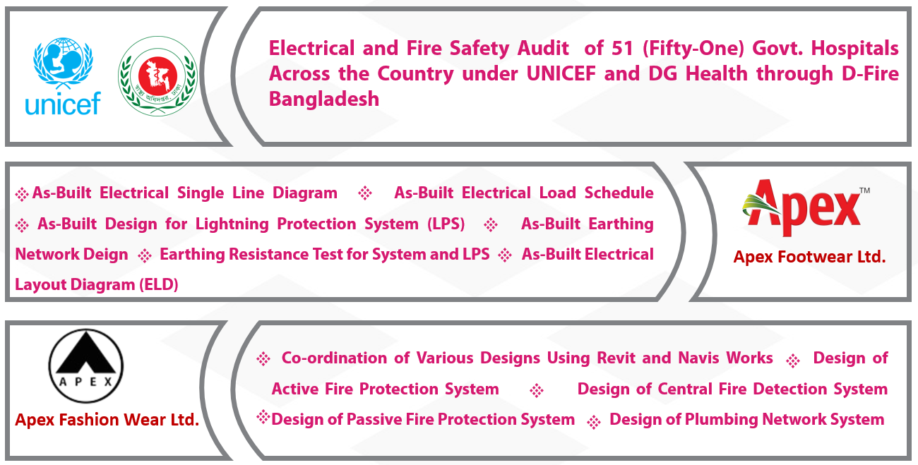 Matrix Engineers Ltd. has a skilled team experienced in safety culture, active in Bangladesh and Pakistan's commercial safety from the start, with inspection experience in India, Myanmar, UAE and Malaysia. Formed by professionals from top universities. Team leaders are experts in fire, electrical, and structural safety audits, designs, BIM and have worked with multinational organizations on installing and maintaining safety equipment.